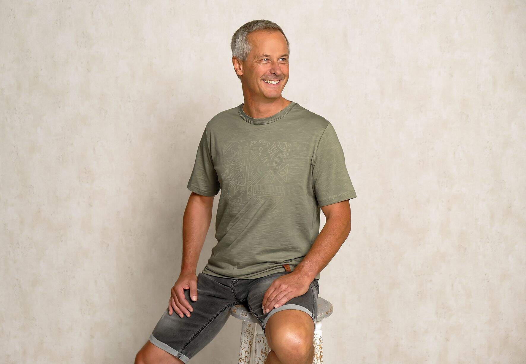 T-Shirt Men Ethno - salbeigrün - 100 % Biobaumwolle (kbA) - nur noch in M