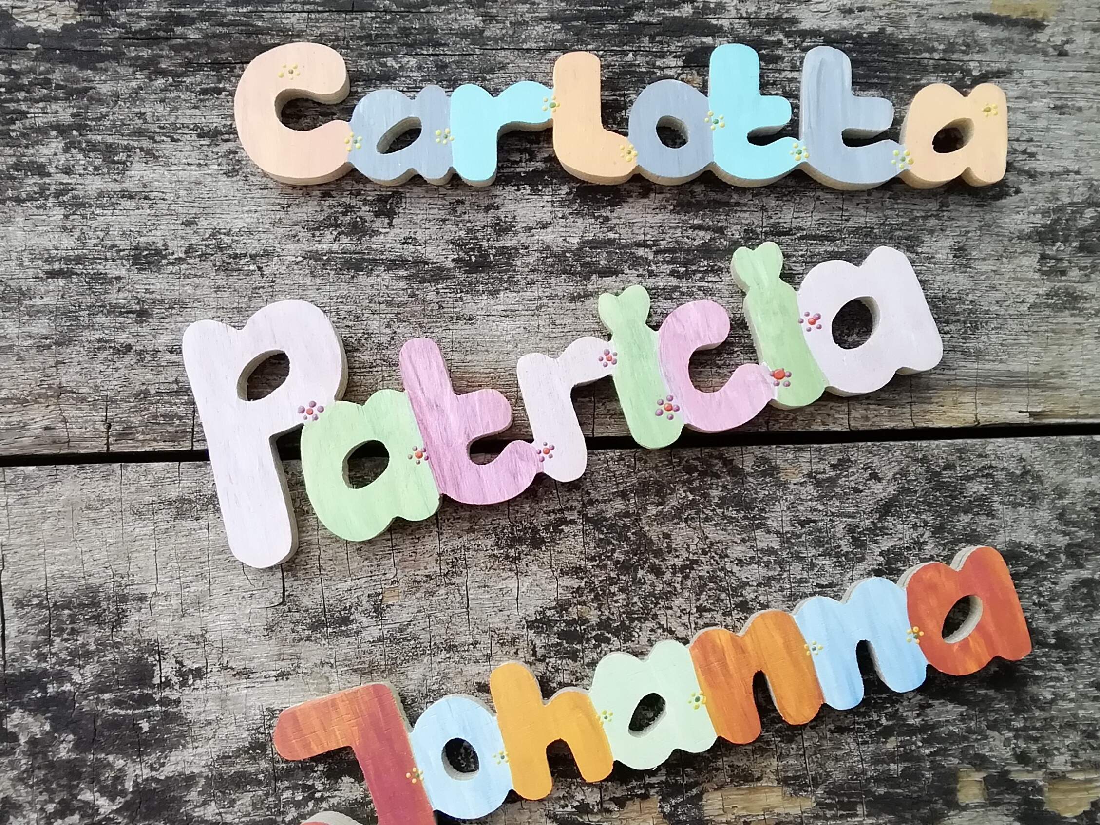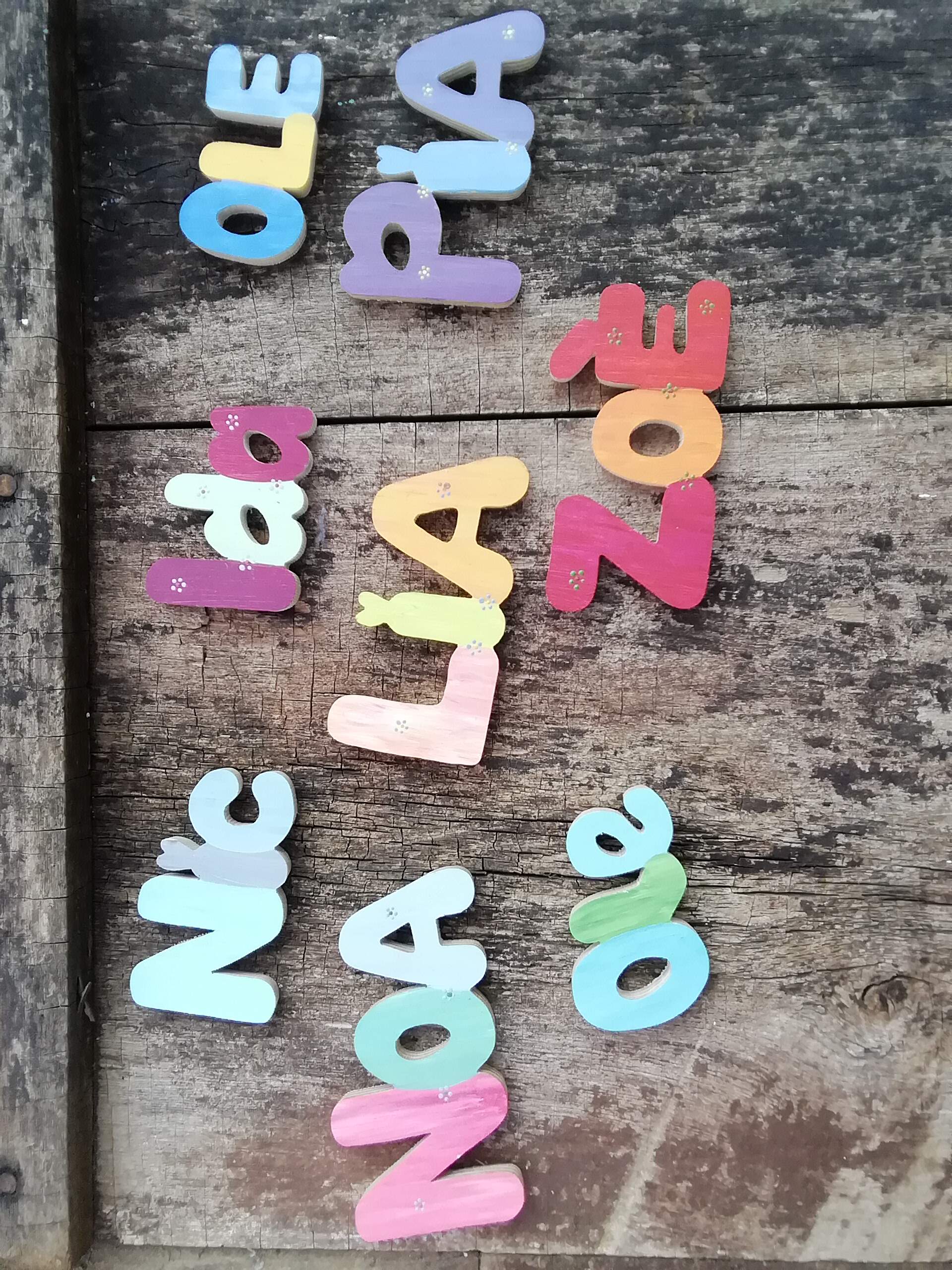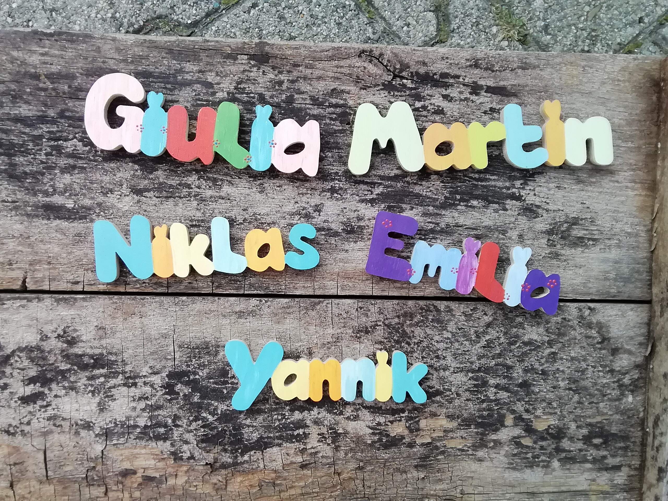 Oder lieber selbst gefertigte Holzbuchstaben für Namen? Die Buchstaben sind von Hand mit der Laubsäge ausgesägt, Schablonen werden nicht verwendet. Jeder Buchstabe ist absolut einmalig. Du suchst dir einfach eine Schrift aus, und jeder Name kann ausgesägt werden. Zum Abschluss kolorierten die Hersteller für dich die Buchstaben ganz nach deinen Wünschen mit fröhlichen, kindgerechten Naturfarben und fertig ist dein individuelles Präsent.