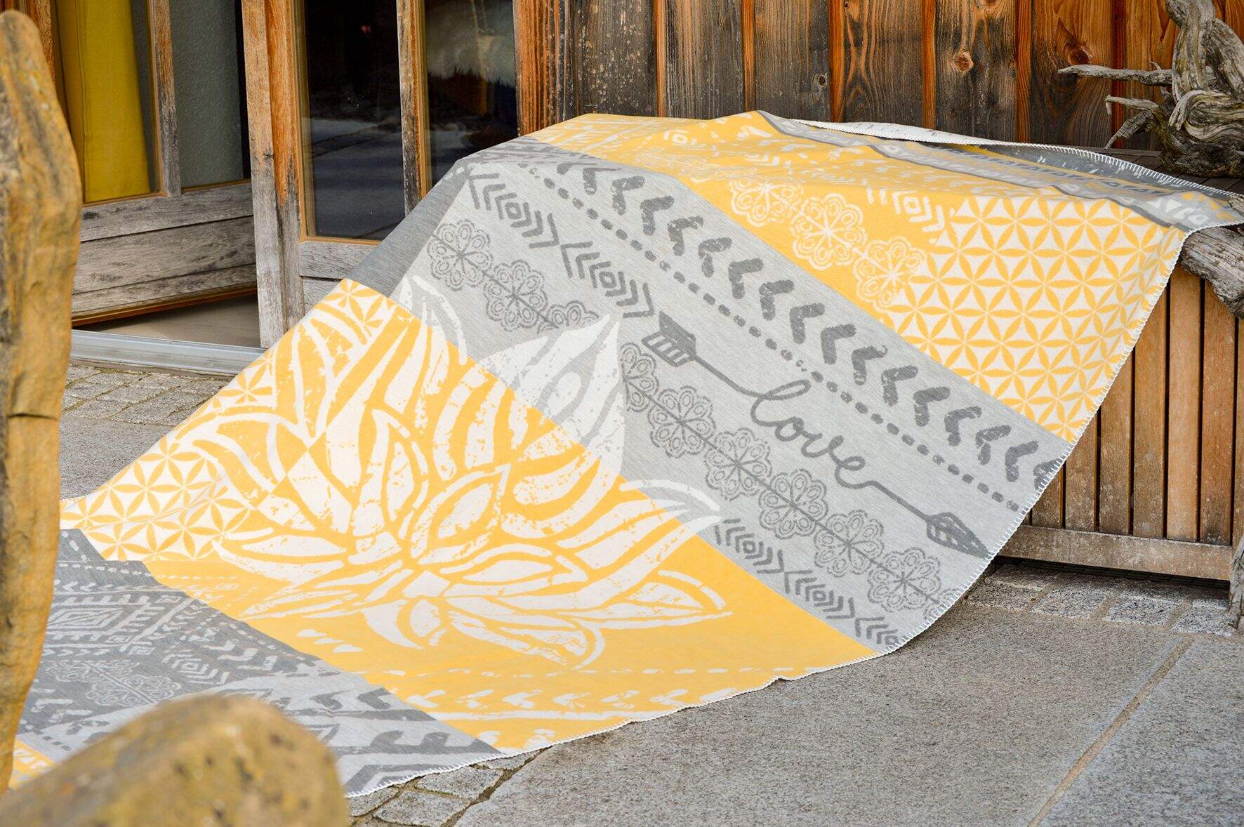Kuscheldecke - Lotus - grau / gelb - 100 % BioBaumwolle (kbA)