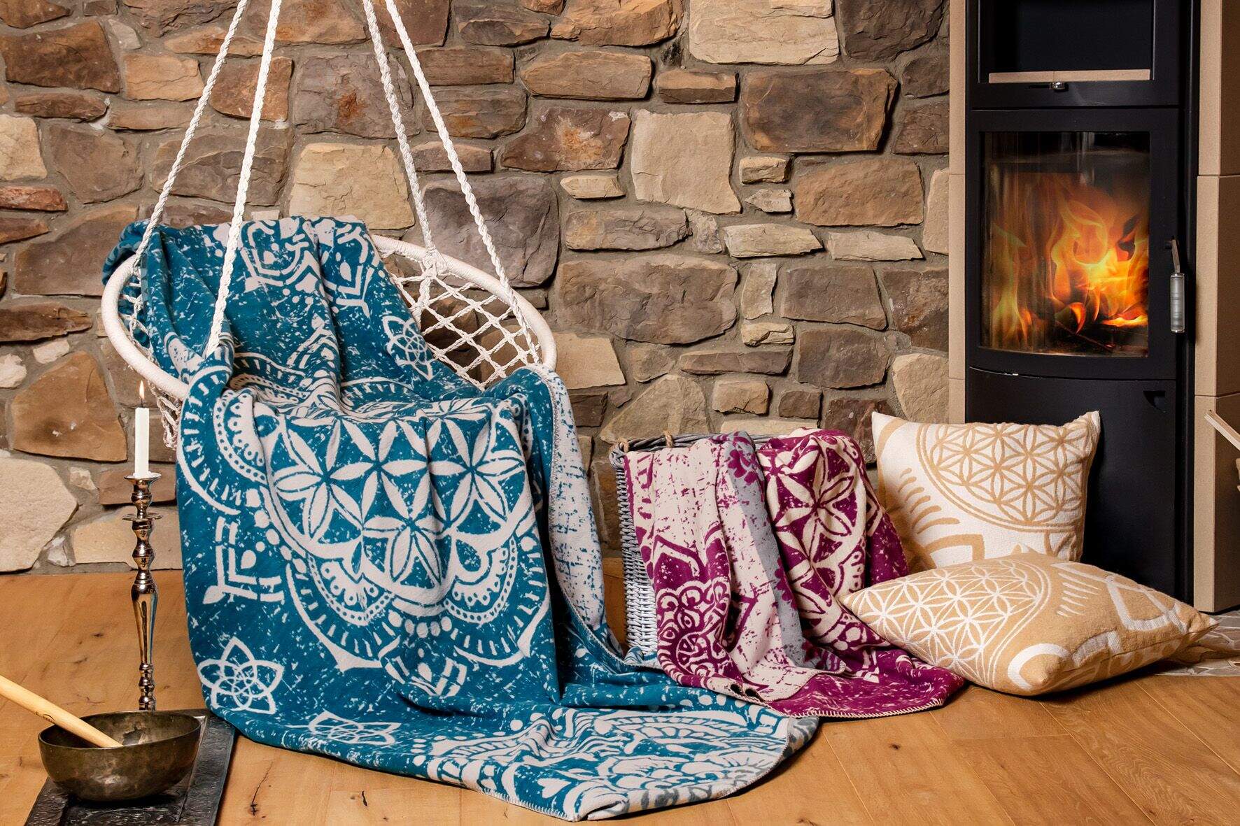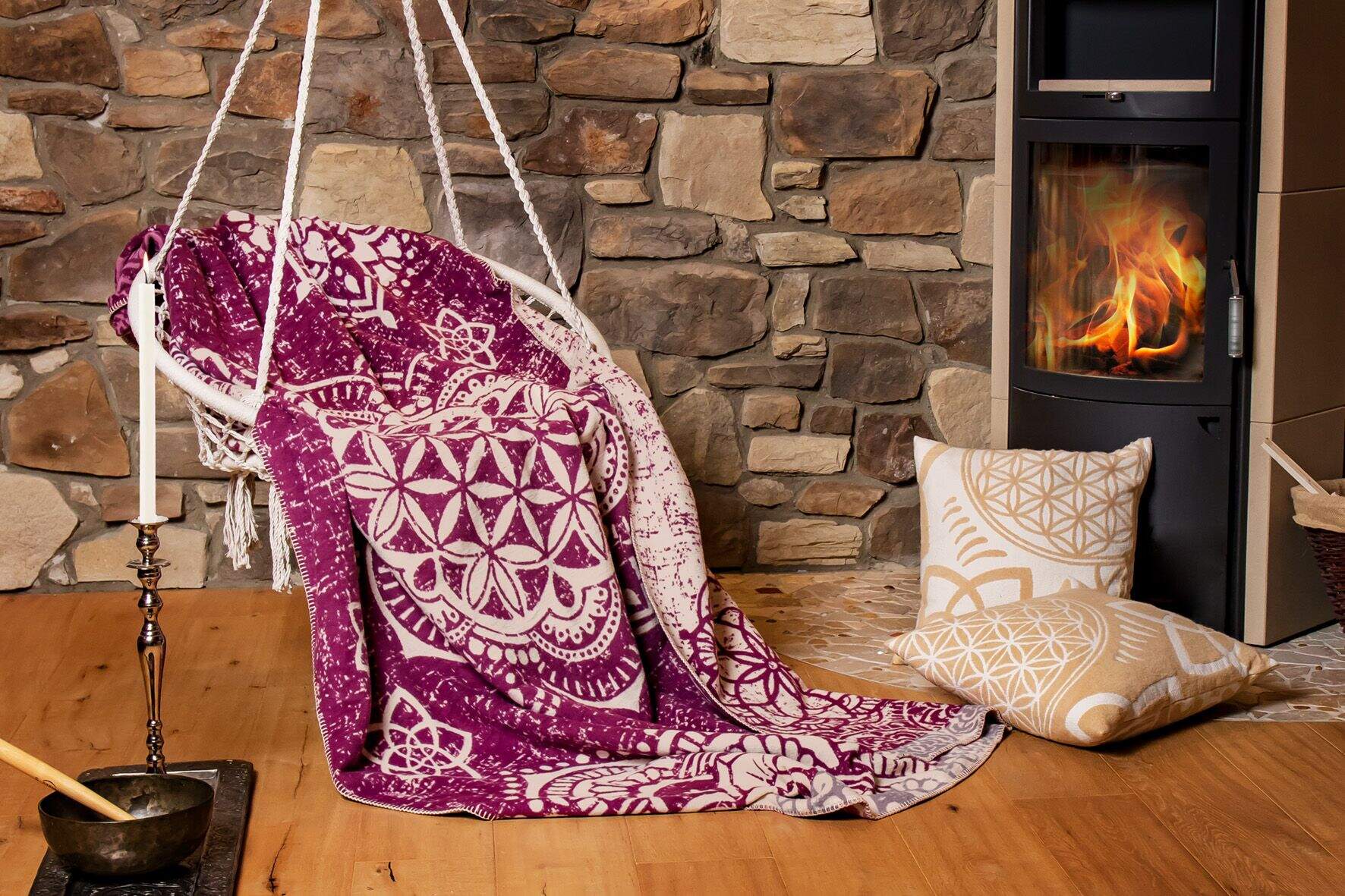 Kuscheldecke nature/beige - Blume des Lebens